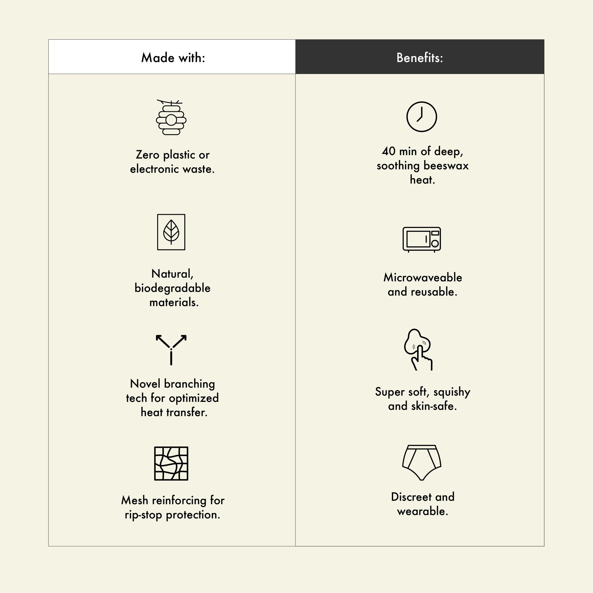 Meet the The UnduĀ Period RescueĀ Pack,Ā theĀ world's first biomimetic heat pack designed specifically for period and pelvic pain. Our heat packĀ isĀ madeĀ with beeswax andĀ organic oils for unparalleled natural, long lasting, reusable pain relief. WhetherĀ at home or on-the-go,Ā this heat pack is with you 100% of the way to sooth cramps and help you do you.Ā